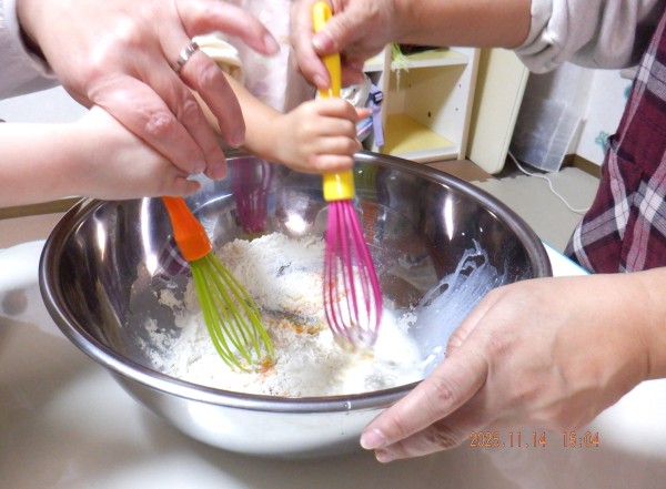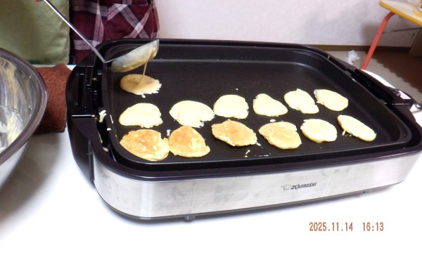 上手に卵を割り、生地を混ぜて、プレートで生地を焼きました😌